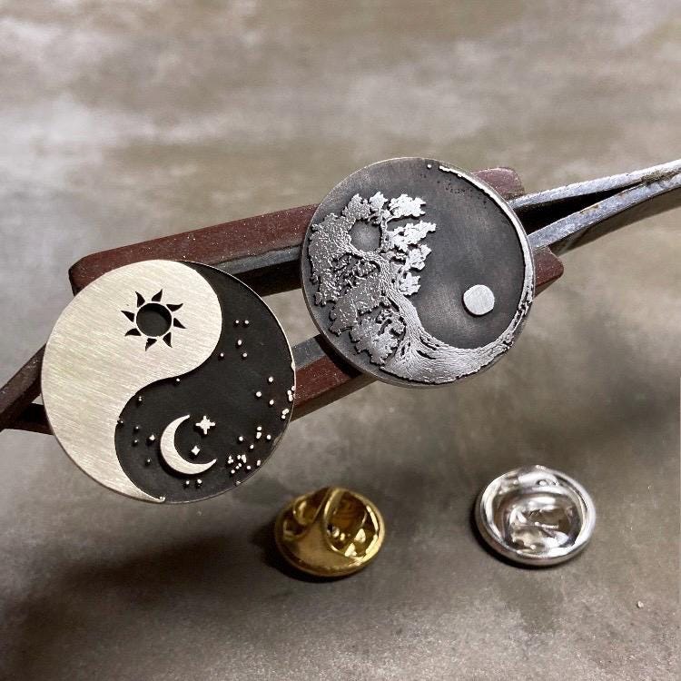 Handmade Yin Yang Pin #4 : Brass or Silver Unisex Lapel Pin